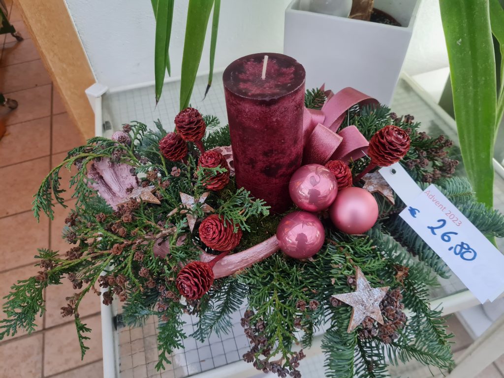 Stimmen Sie sich mit uns in die Adventszeit ein und genießen ihren Aufenthalt mit Gebäck, Punsch oder Glühwein. Besonders schön ist dabei der Lichterabend. Bei Kerzenschein und weihnachtlichen Ambiente können Sie Adventskränze, Gestecke, Dekorationsartikel, zauberhafte Weihnachtssterne und andere Zimmerpflanzen auf sich wirken lassen. Unser Angebot reicht von altbewährten bis hinzu aktuellen Trends. Alle Werkstücke werden individuell und in Handarbeit in unserer Floristik angefertigt.
